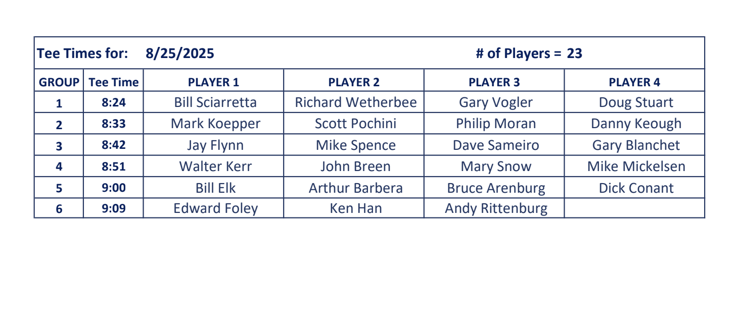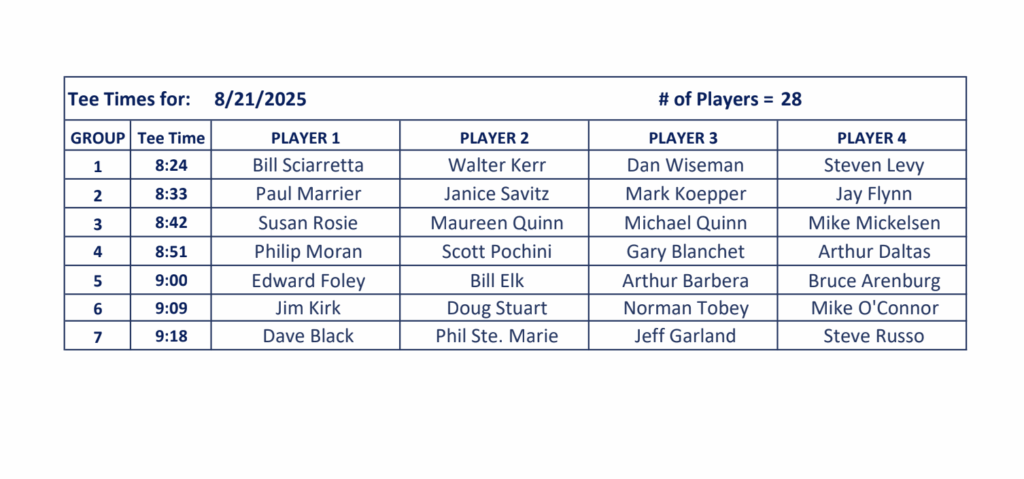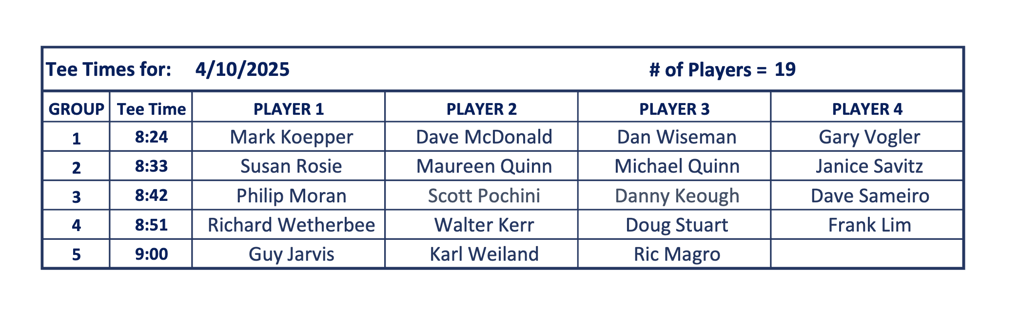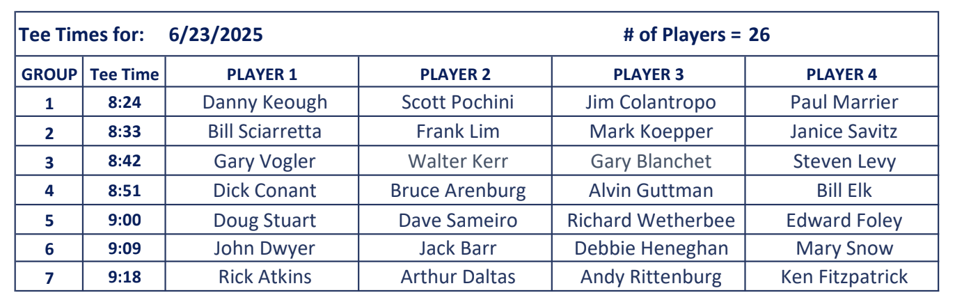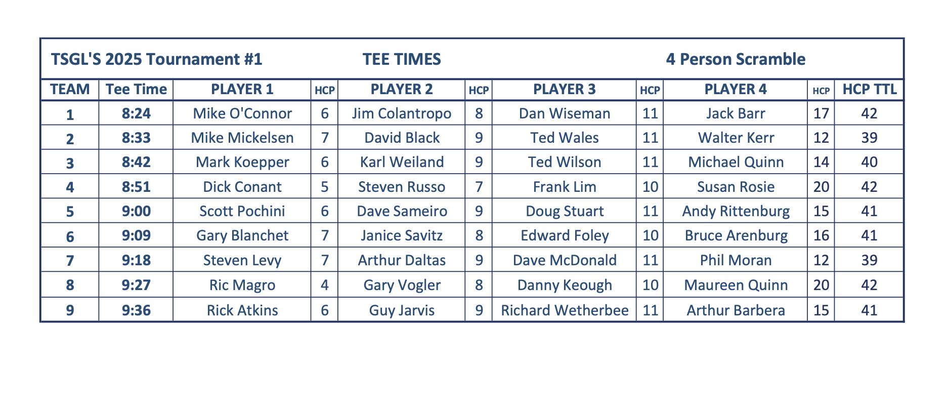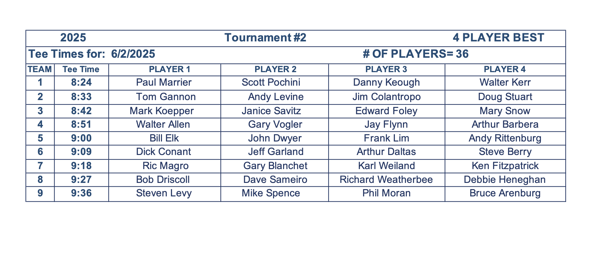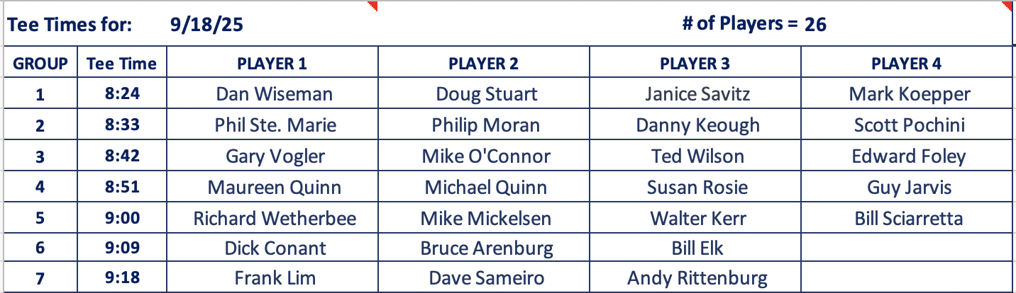 2025-10-06 Tee Times for Oct 6 Tournament 6 – 4 Person Scramble