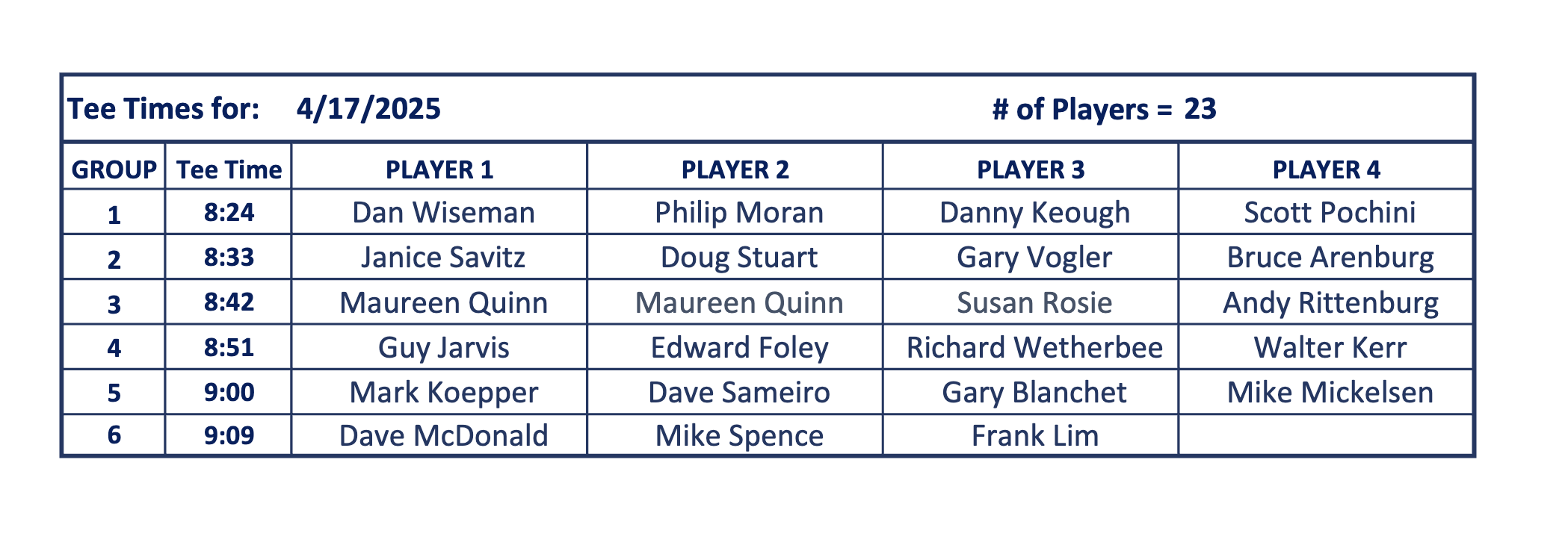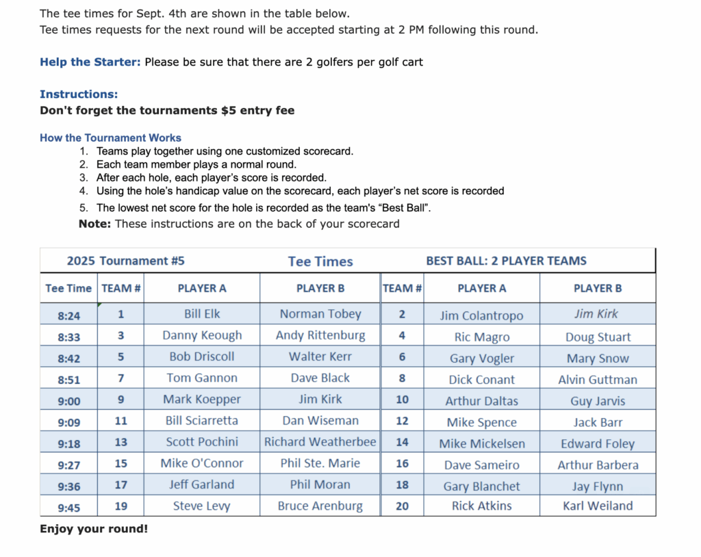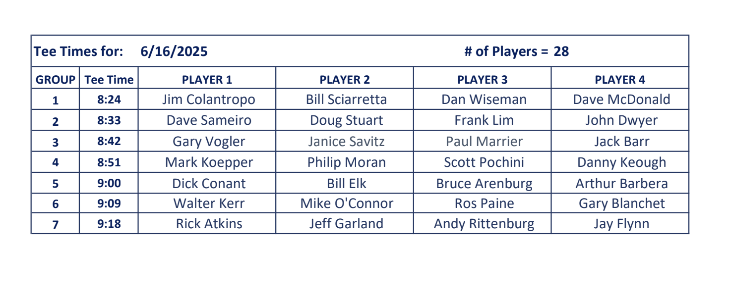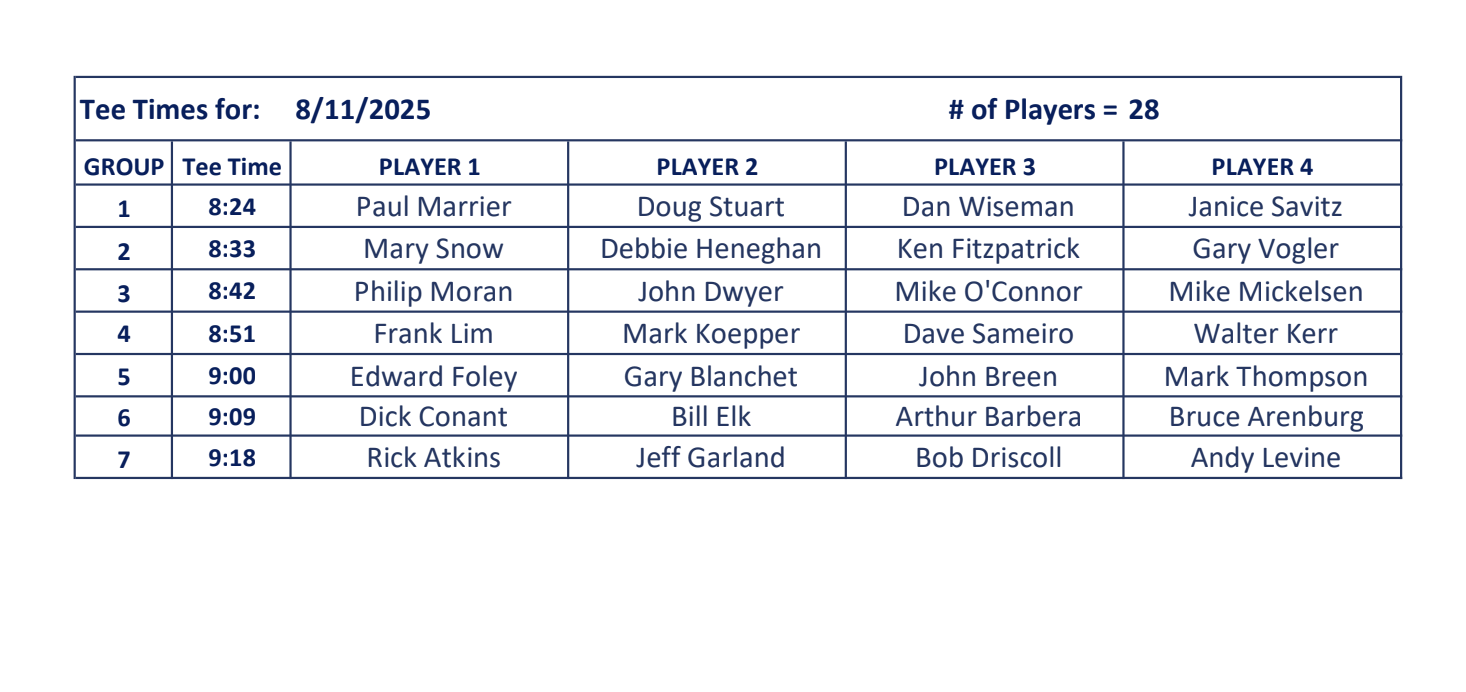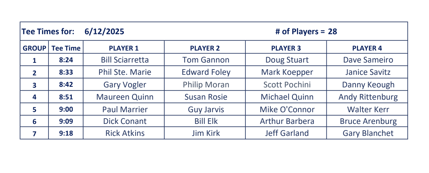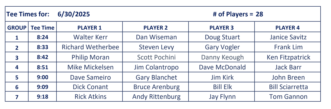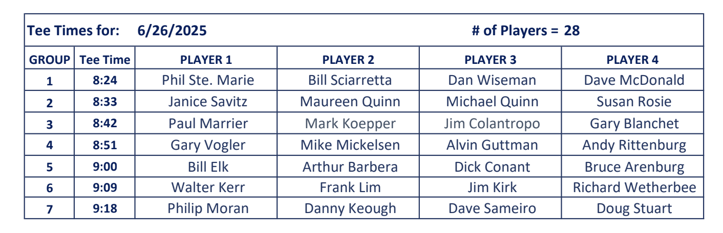 2025-10-06 Tee Times for Oct 6 Tournament 6 – 4 Person Scramble