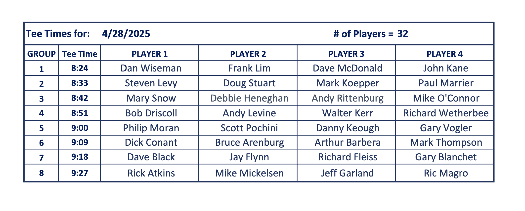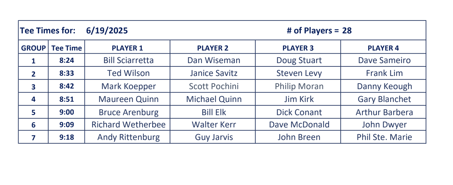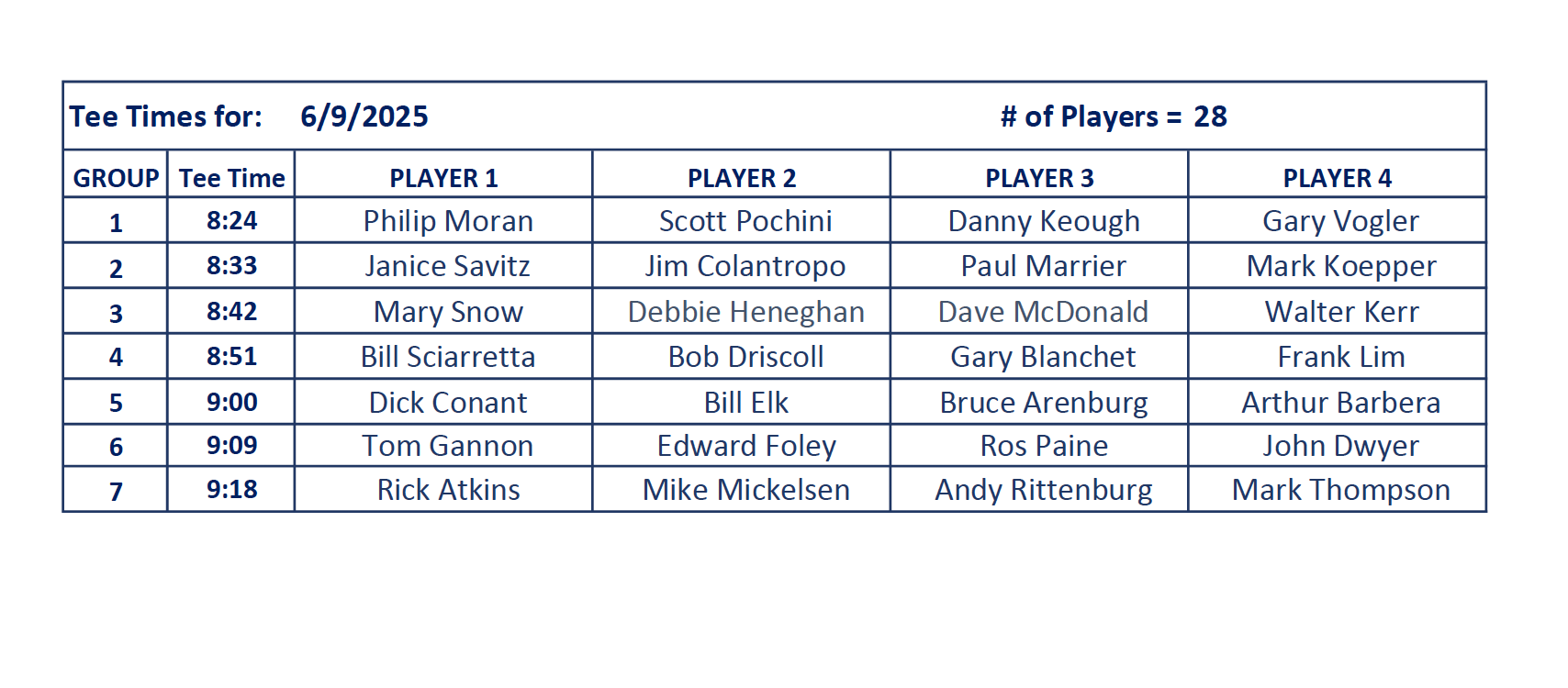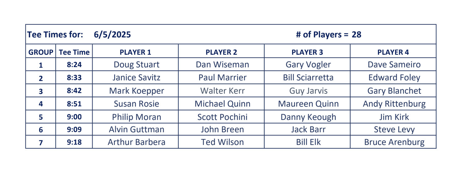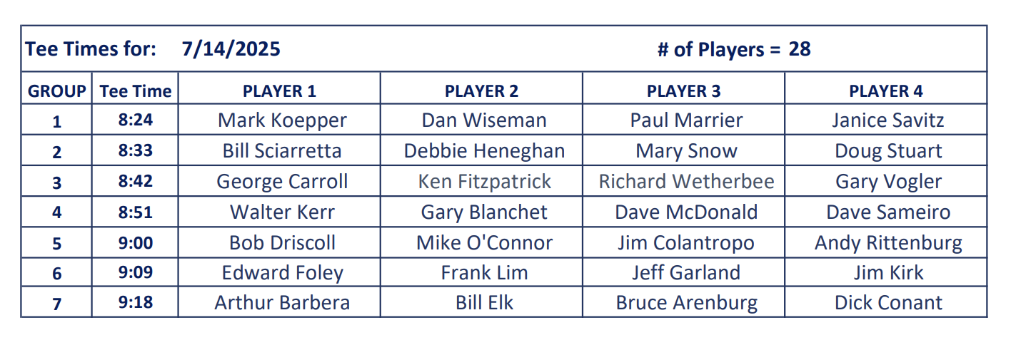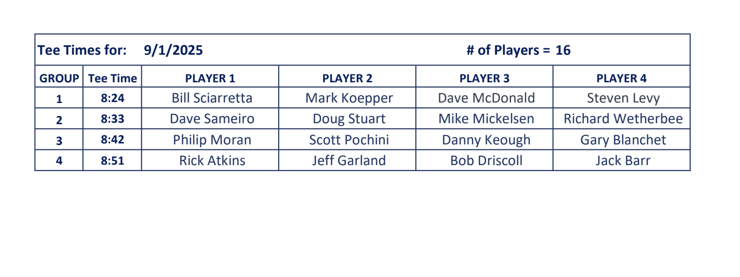2025-10-06 Tee Times for Oct 6 Tournament 6 – 4 Person Scramble