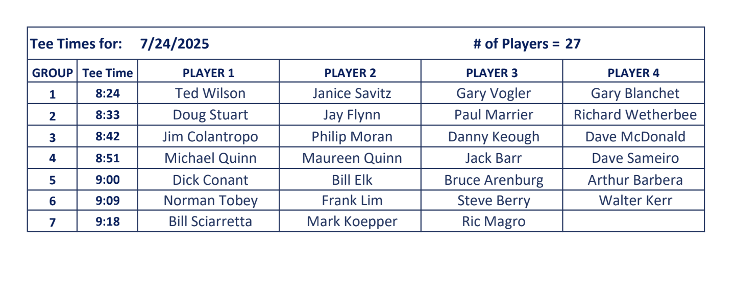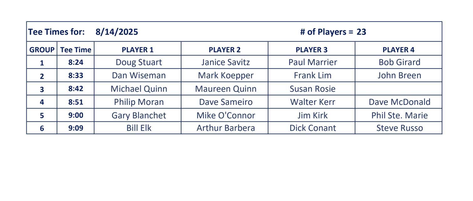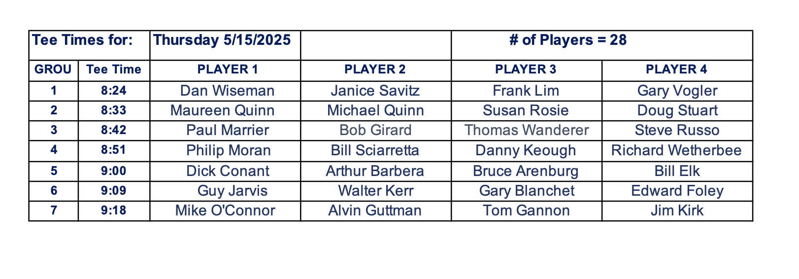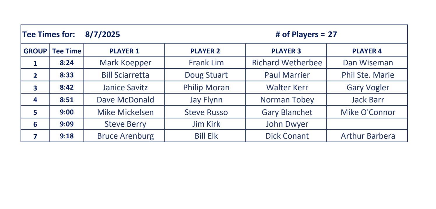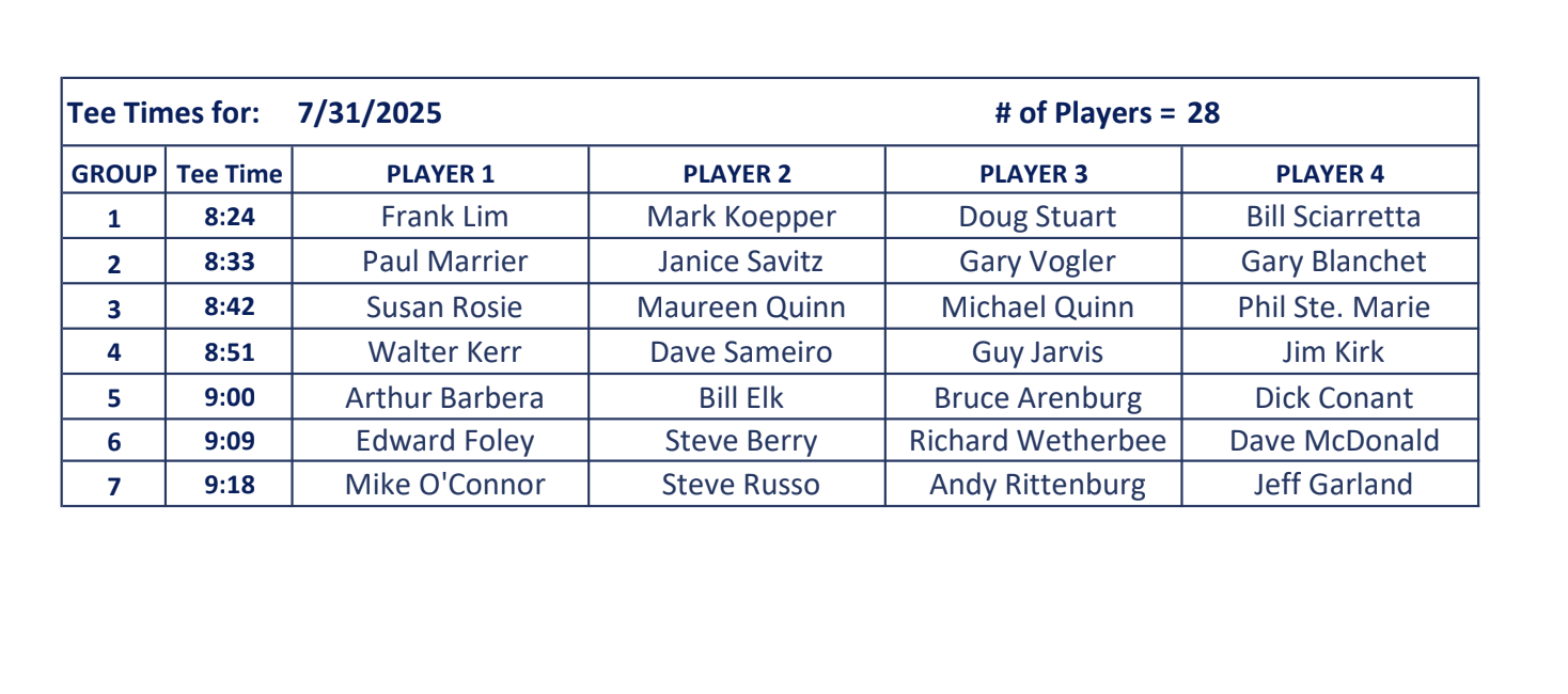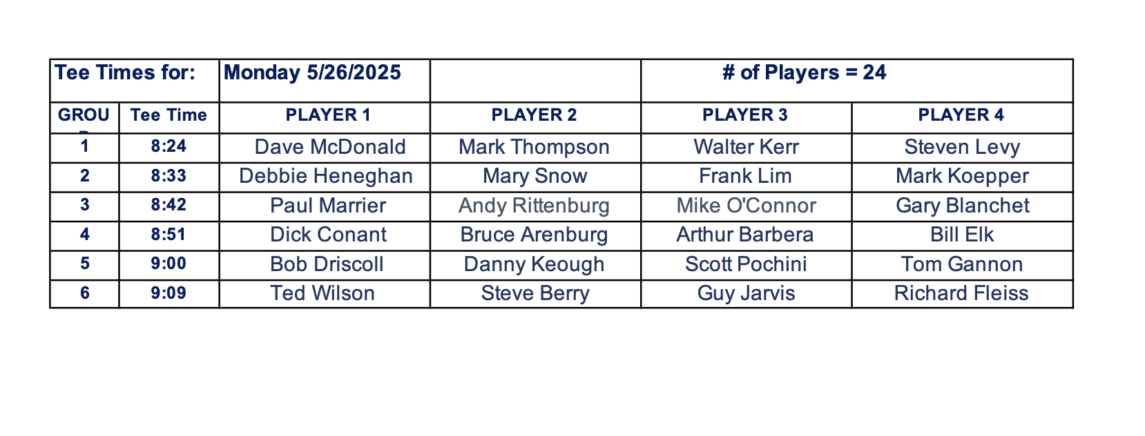 2025-10-06 Tee Times for Oct 6 Tournament 6 – 4 Person Scramble