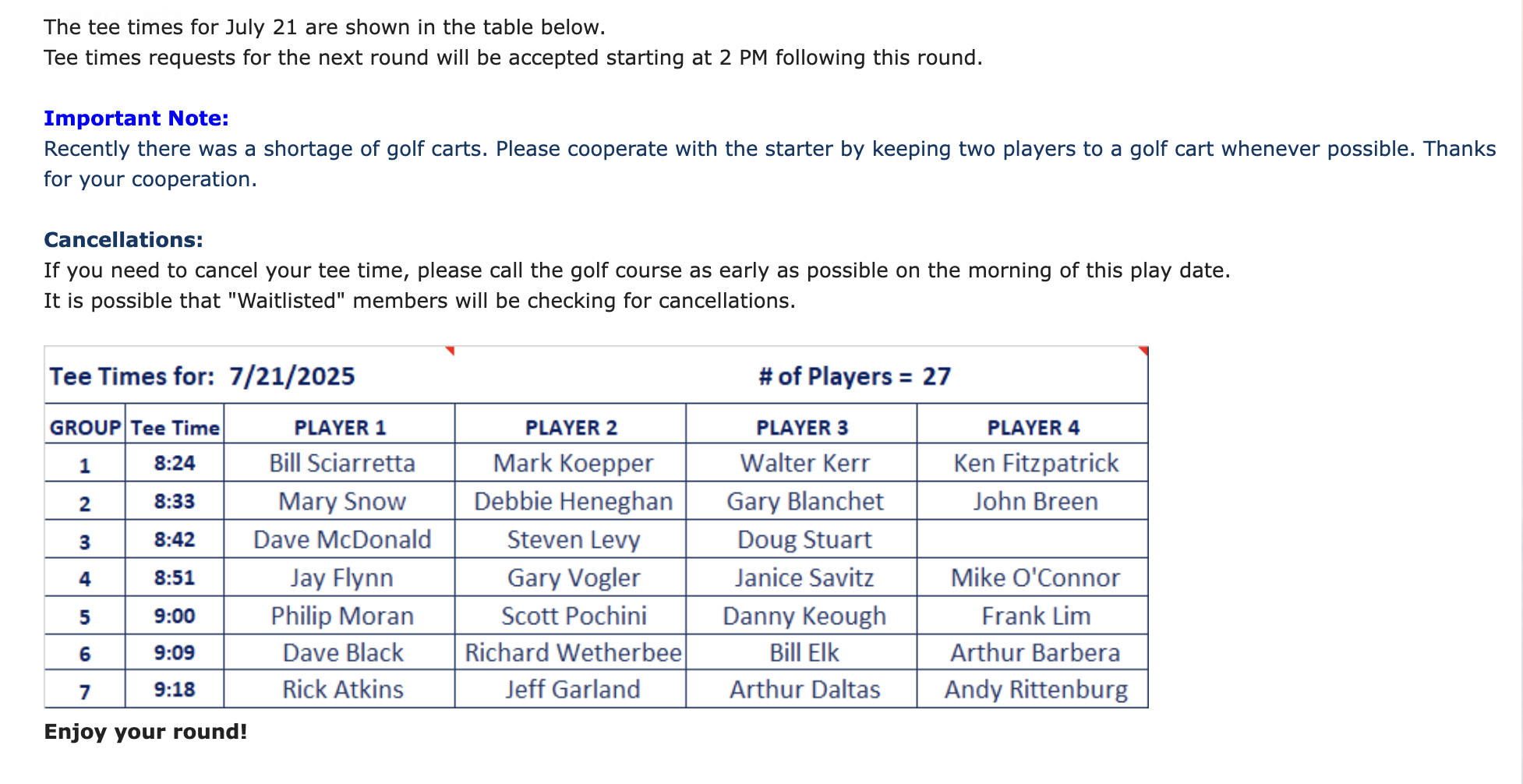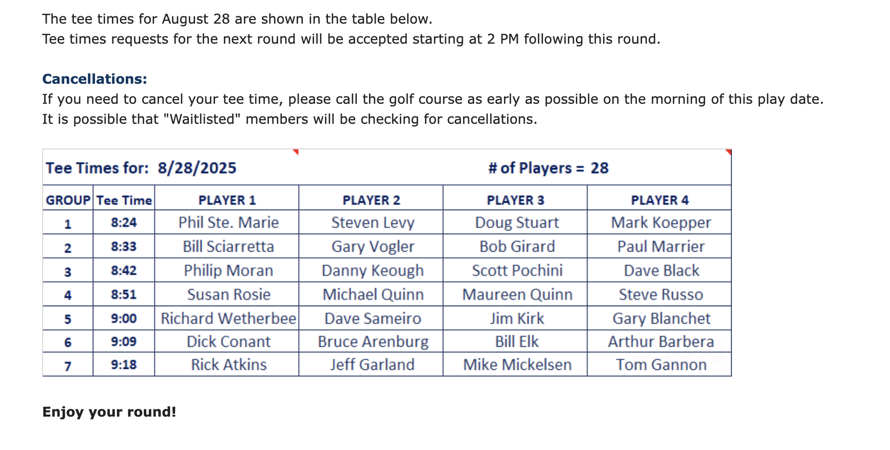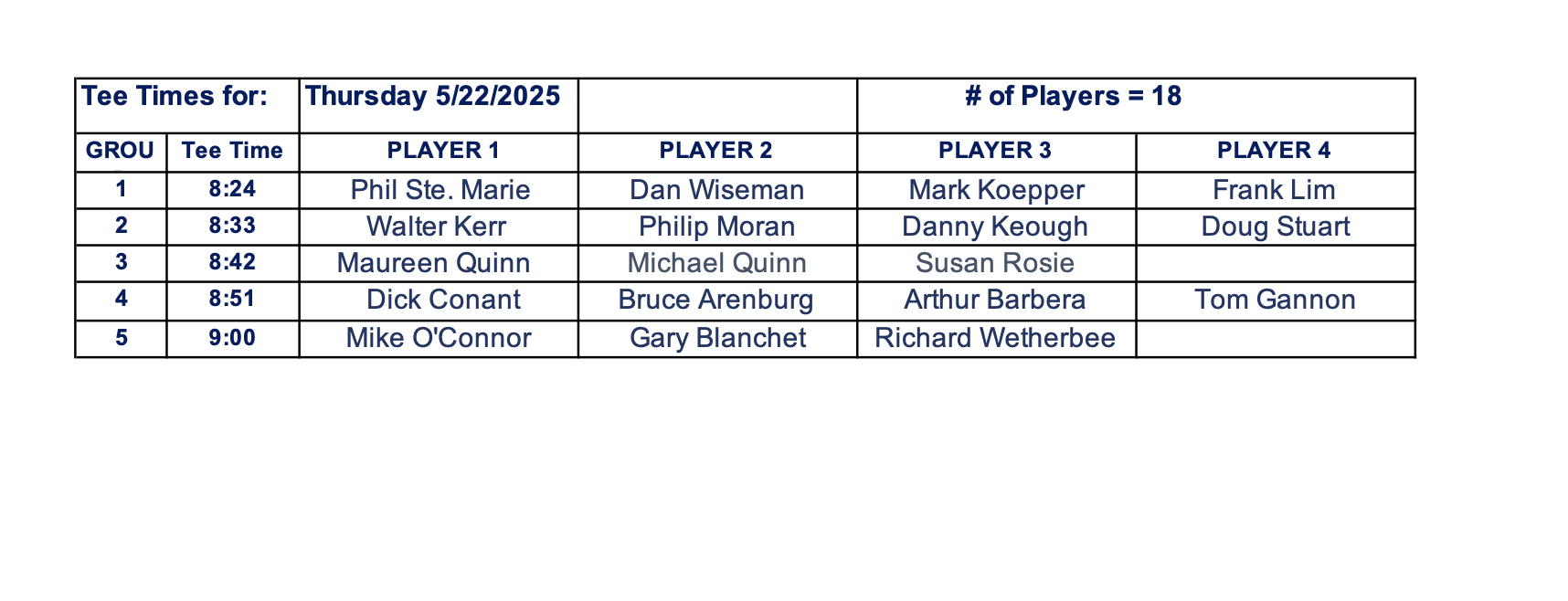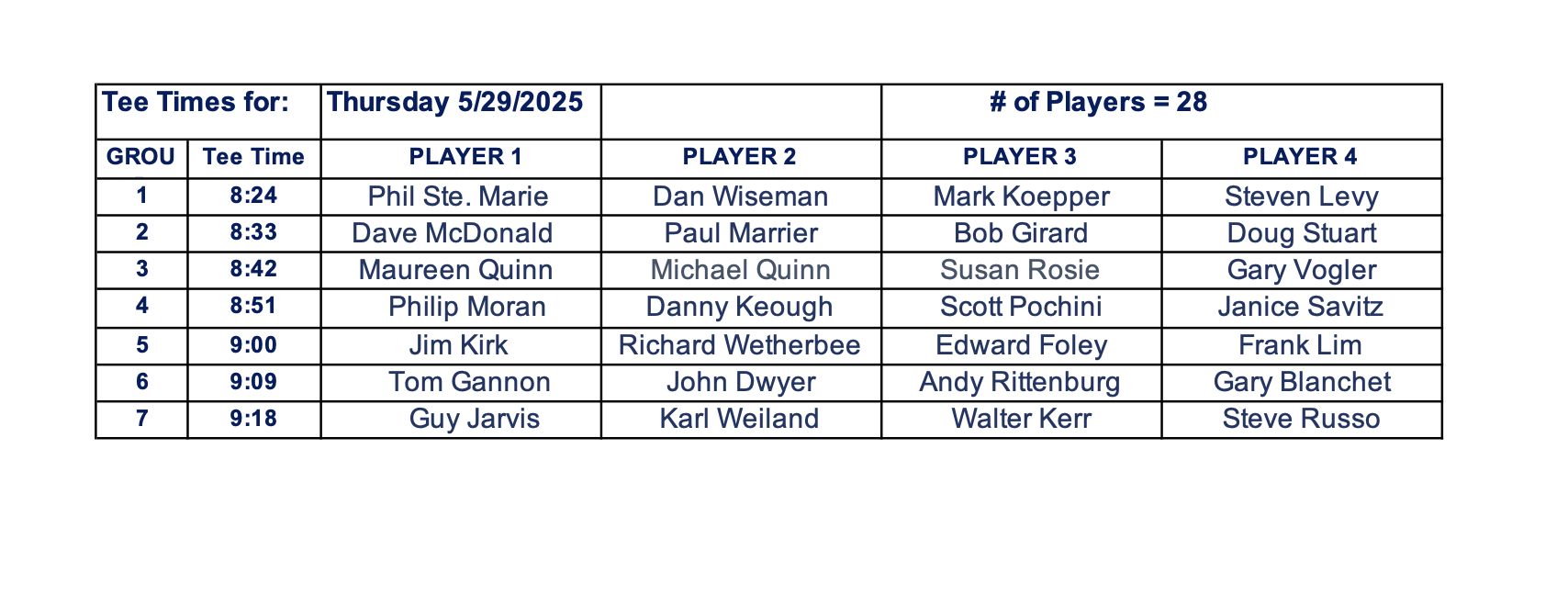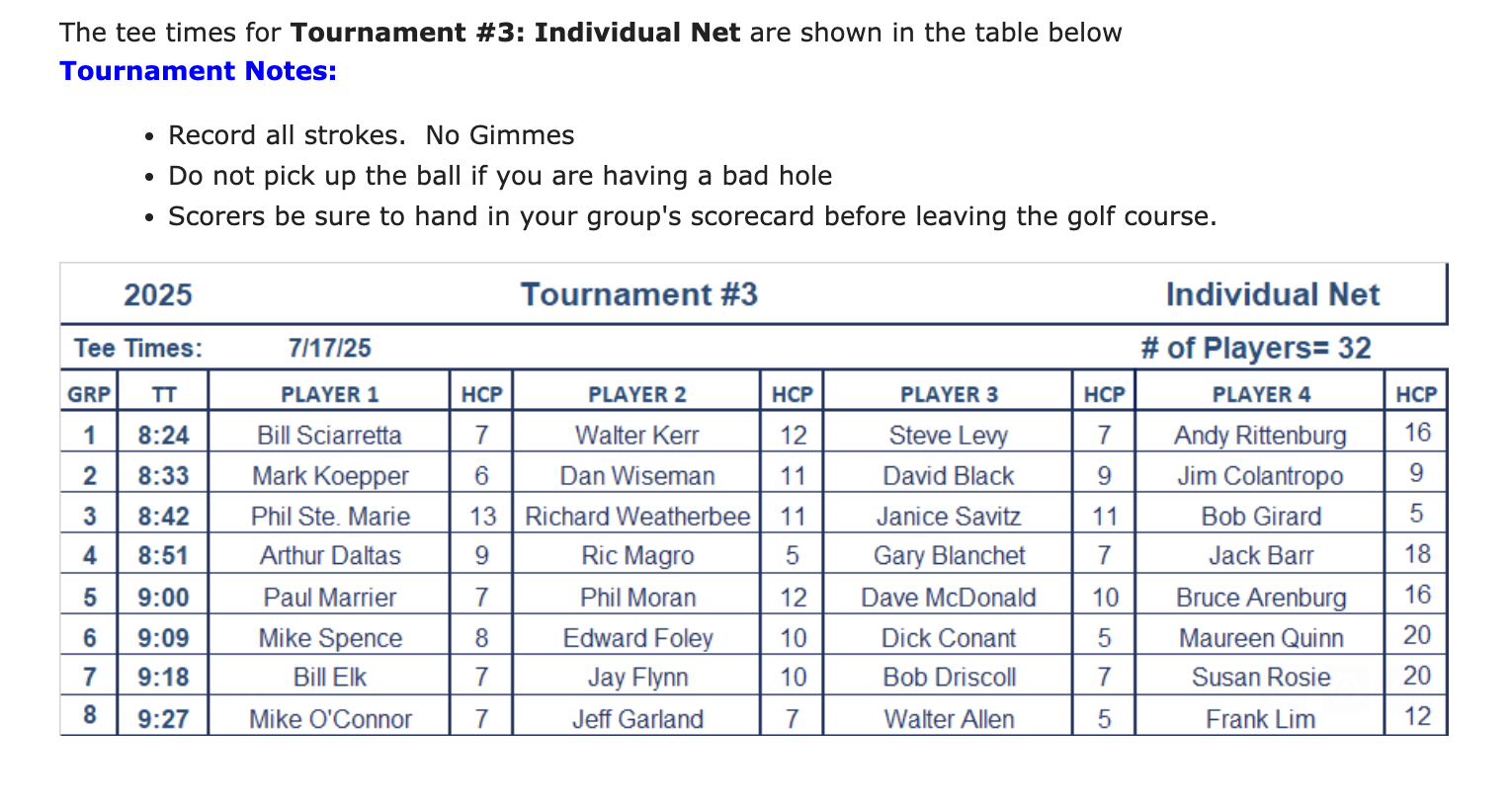 2025-10-06 Tee Times for Oct 6 Tournament 6 – 4 Person Scramble